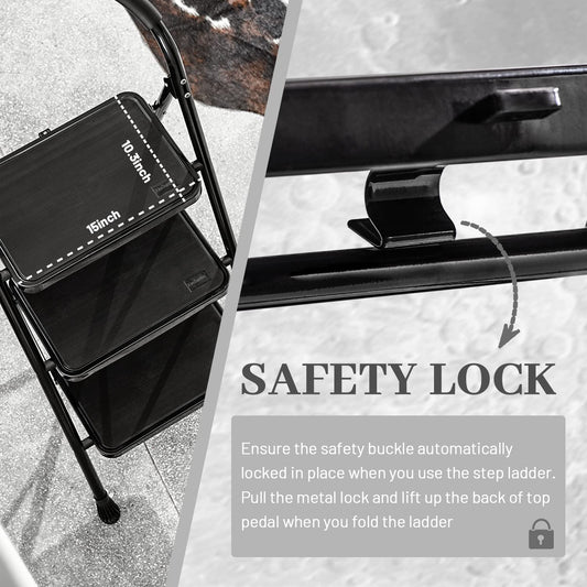 Step Ladder 3 Step, Folding Step Stool with Wide Anti-Slip Pedal and Comfort Handgrip, Portable Sturdy Slim Ladders 3 Step for Kitchen and Home, 330 Lbs, Black